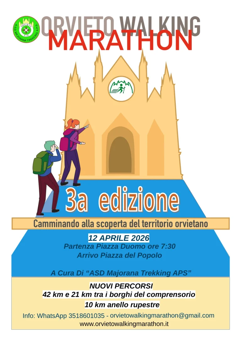 3 percorsi di 42, 21 e 10 Km, esclusivamente camminando, alla scoperta delle bellezze del territorio orvietano.